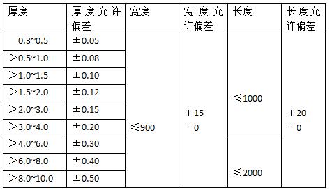 1 板材的厚度、寬度、長(zhǎng)度的允許偏差應(yīng)符合下表的規(guī)定。
