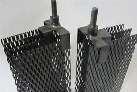鈦陽極分類:按照在電化學反應中陽極析出氣體來區(qū)分,析出氯氣的稱析氯陽極,如釕系涂層鈦電極:析出氧化的稱為析氧陽極,如銥系涂層鈦電極和鉑鈦網(wǎng)/板。 析氯陽極(釕系涂層鈦極):電解液中氯離子含量高:一般在鹽酸環(huán)境及電解海水,電解食鹽水環(huán)境。如釕銥鈦陽極,釕銥錫鈦陽極。 析氧陽極(銥系涂層鈦電極):電解液一般為硫酸環(huán)境。對應我公司產(chǎn)品為銥鉭陽極,銥鉭錫陽極,高銥陽極。 鍍鉑陽極(白金鈦網(wǎng)/白金鈦板):鈦為基材。表面鍍上貴金屬鉑,鍍層厚度一般為1-5um(微米)。白金鈦網(wǎng)網(wǎng)孔規(guī)格一般為12.7*4.5mm或6*3.5mm.