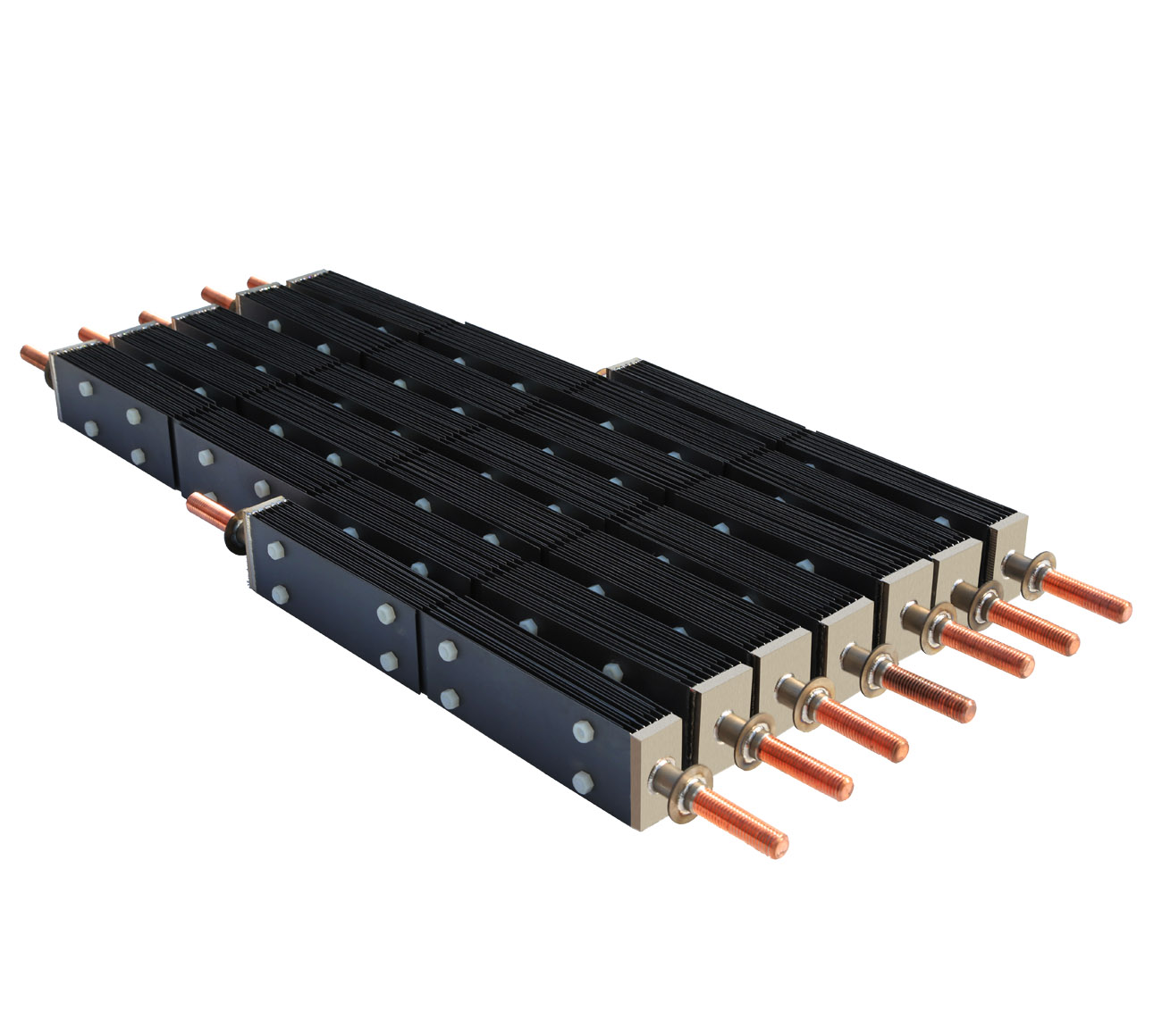 陽極材料可以選用涂層鈦電極?;旌涎趸锿繉逾侁枠O,使用壽命長,此種涂層鈦陽極的過電位也比較低,析氯電流效率高,節(jié)能效果好。