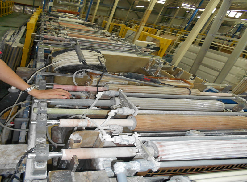 10. 應(yīng)用背景:在電子工業(yè)領(lǐng)域中,高純度陽(yáng)極氧化鋁箔的需求量近年來(lái)顯著增加。為了得到具有高電容率的的均勻氧化膜,需要在特別的電解液中把鋁箔進(jìn)行陽(yáng)析氧化。電流密度1000-5000A/平米。電流直接通過(guò)薄鋁箔是很困難的,需要在鋁箔兩旁安裝輔助陽(yáng)極和輔助陰極,以不直接接觸形式向鋁箔通電。通常在電解液中含有有機(jī)物,有機(jī)化合物在陽(yáng)極上被氧化分解,而污染了電解液,同時(shí)有機(jī)物吸附在電極表面上,使電極電位顯著升高而破壞了涂層,因此需要低氧過(guò)電位的涂層陽(yáng)極,目前該工藝主要采用的是銥鉭陽(yáng)極。